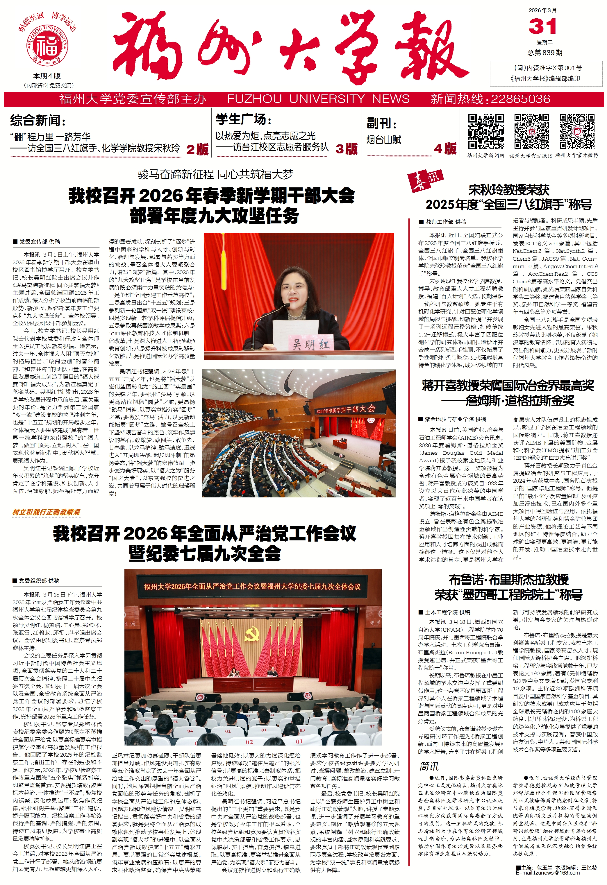 融媒中心讯/3月31日至4月3日,全国政协常委、教科卫体委员会主任陈宝生率队来闽,就人工智能赋能教育开展调研。3月31日,调研组一行到福州大学实地调研,福州大学党委书记、校长吴明红院士陪同调研。陈宝生指出,人工智能正以前所未有的广度和深度驱动教育变革。我们要辩证看待其带来的机遇与挑战,准确把握“人工智能+教育”的核心内涵,同时正是教育系统慢变量特性,与人工智能技术快速迭代之间的结构性矛盾,以新理念、新技...